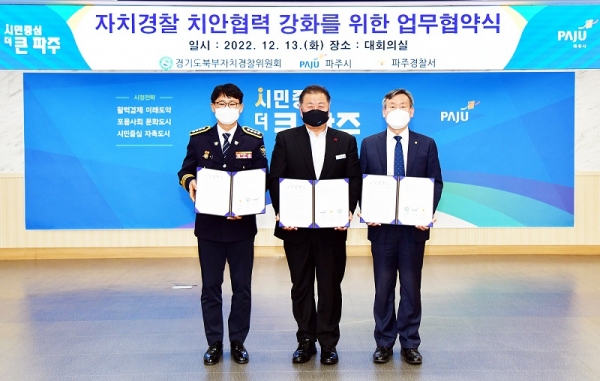 이날 협약식에는 김경일 파주시장, 신현기 북부자치경찰위원회 위원장, 이재성 파주경찰서장 등 10여명이 참석했다.