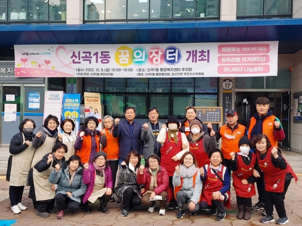 첫 번째 마을사업인 ‘신곡1동 꿈의 장터’는 자매결연지 김삿갓면의 농특산물 직거래장터 외에도, 크리스마스 장식 토탈공예, 나만의 문인화 스카프, 편지쓰기 등 다양한 체험부스 운영을 통해 다채로운 볼거리를 제공해 주민으로부터 큰 호응을 얻었다.