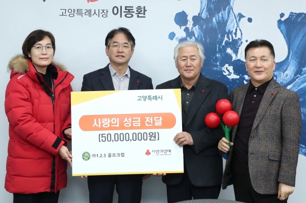 [금요저널] 고양특례시는 지난 12일 ㈜1.2.3 골프클럽에서 연말을 맞아 성금 5천만원을 고양시 저소득층을 위해 기부했다고 밝혔다.