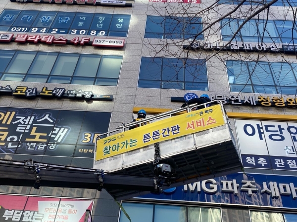이에 지난 7월 옥외광고·건축·전기분야의 기술 자격 보유 공무원 등 6명으로 구성된 전국 최초 ‘공무원 옥외광고물 안전점검단’이 유동 인구 많은 지역, 강풍 상습 피해 지역 등 안전 점검에서 제외된 간판을 점검 매뉴얼에 따라 점검할 예정이다.