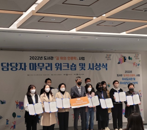 이번 시상은 ‘길 위의 인문학’사업을 수행한 전국 300여 개 기관을 대상으로 사업 평가연구 심사를 통해 문화체육관광부장관상 3개관, 한국도서관협회장상 20개관이 선정됐다.