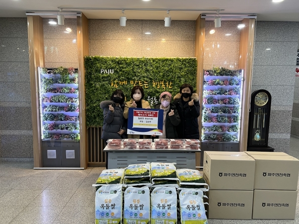 이날 파추연천축협 월롱면 한우리회와 월롱면 농업경영인부인회, 개인 후원자 사재엽 씨 또한 각각 한돈 50kg과 성금 30만원, 쌀 300kg을 전달했다.