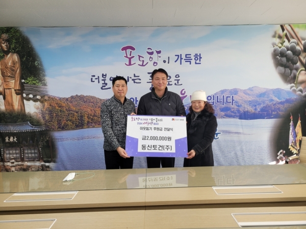 이번 기부는 동신토건에서 서운면 지역의 독거노인 및 취약계층에 다양한 사업을 펼칠 수 있도록 서운면 지역사회보장협의체에 기탁한 것으로 기부금은 향후 겨울철 난방비 지원 및 한끼돌봄 등 협의체에서 취약계층을 위해 진행하는 사업에 사용될 예정이다.