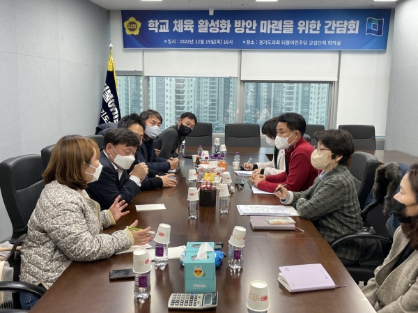 [금요저널] 경기도의회 더불어민주당은 15일 더불어민주당 대표의원실에서 학교체육 활성화 방안 마련을 위한 간담회를 개최했다.