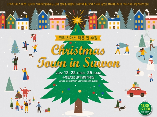 [금요저널] 수원컨벤션센터가 12월 22~25일 오후 3시부터 9시까지 수원컨벤션센터 광장 일원에서 ‘2022 크리스마스 타운 인 수원’ 행사를 연다.