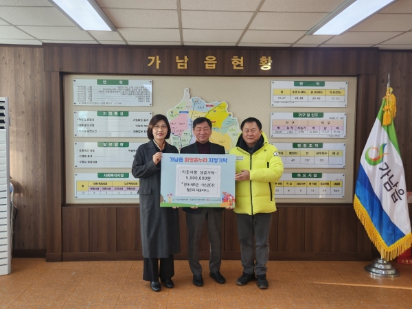 이복환 가남읍장은 “이웃에 대한 관심과 사랑으로 이웃돕기 활동에 동참해주신 황은미 대표이사님에게 감사의 말씀을 드린다”며 “기탁해 주신 성금은 복지 지원이 필요한 위기가구를 위해 소중하게 사용하겠다”고 전했다.