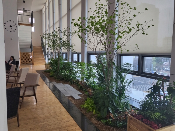공기정화 기능과 실내 온습도 조절에 탁월한 아레카야자 등 13종을 식재해 냉·난방에 소모되는 에너지 사용량도 줄어들 것으로 기대된다.