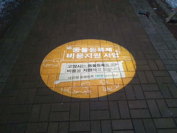 로고젝터는 동물등록제비용지원목줄 착용 등 펫티켓동물등록의무 내용을 투영한다.
