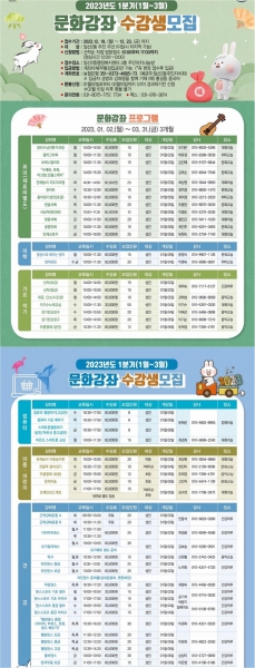 [금요저널] 고양특례시 일산2동 주민자치센터에서 2023년 1월부터 3월까지 운영하는 1분기 문화강좌 수강생을 모집한다.