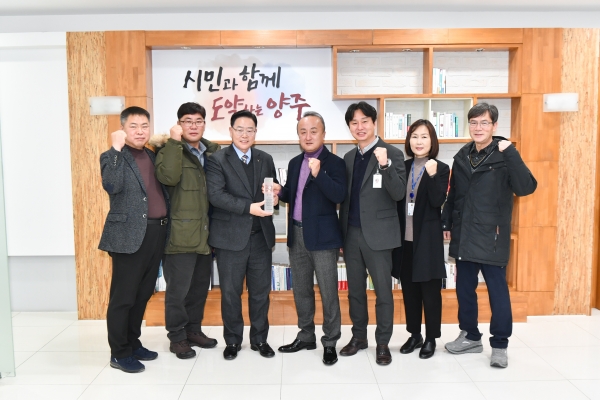 [금요저널] 양주시 산북 도시재생 주민협의체는 21일 양주시청 시장실에서 강수현 양주시장에게 국토부 주관 도시재생사업 공모 선정에 대한 감사패를 전달했다.