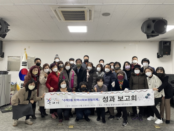 [금요저널] 구리시 수택3동 행정복지센터는 지난 21일 행정복지센터 2층 다목적실에서 수택3동 지역사회보장협의체 주관으로 ‘2022년 수택3동 지역사회보장협의체 성과보고회’를 개최했다.