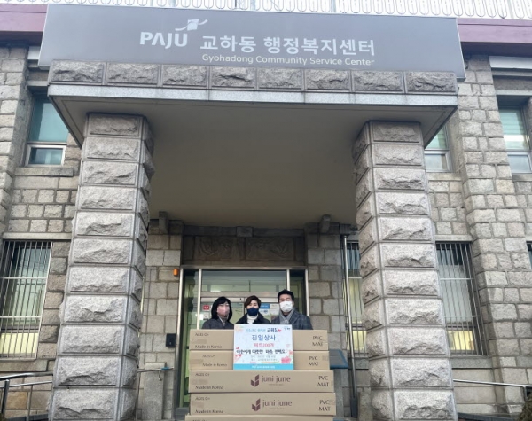 나소의 ‘겨울아침창가’ 대표는 교하동 어르신들이 따뜻한 겨울을 보내실 수 있도록 배우자가 운영하는 진일상사를 통해 200개의 거실 매트를 경로당에 기부했다.