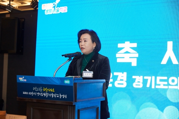 정윤경 의원은 졸업생들에게, “경기도생활기술학교를 졸업하신 것만으로도 이미 각자의 인생에서 작은 성공의 주인공으로 한편의 성공 신화를 쓰셨다고 생각한다”고 말하며 “과거에도 그러했듯 앞으로도 우리 사회 곳곳에서 중추적인 역할을 해주실 것이라 믿습니다”고 진심어린 축사를 전했다.