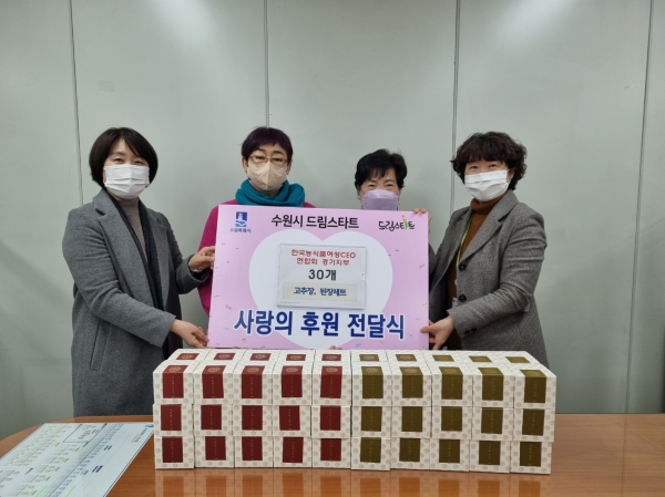 한국농식품여성CEO연합회 경기지회, 수원시 드림스타트 아동 가정에 명인 고추장·된장세트 후원