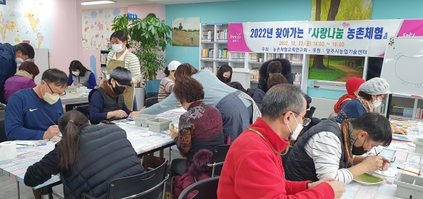 [금요저널] 양주시 농업체험교육연구회은 23일 옥정마을LH16단지 아파트를 방문해 주민 40명과 함께‘찾아가는 사랑나눔 농촌체험’활동 체험행사를 가졌다.