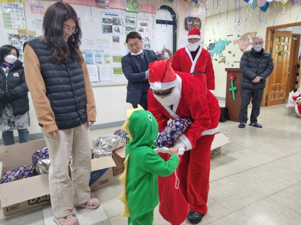 선물 전달식 당일 주민자치위원들은 아이들의 하교 시간에 맞춰 준비한 선물을 전달했으며 특히 오재천 부위원장 및 이미경 사무국장이 산타복을 입고 아이들에게 선물을 직접 전달해 아이들에게 더욱 즐겁고 특별한 시간을 만들어줬다.
