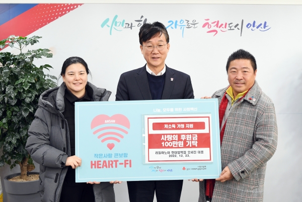 [금요저널] 안산시는 지난 23일 리틀하노이 한대앞역점으로부터 사랑의 후원금 100만원을 기탁받았다고 26일 밝혔다.