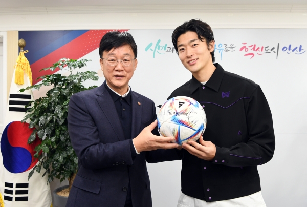 이민근 시장은 “74만 안산시민들을 대표해 조규성 선수가 안산의 아들이라는 것이 자랑스럽다”며 “조규성 선수가 대한민국을 넘어 전 세계로 뻗어나갈 수 있도록 응원하겠다”고 말했다.