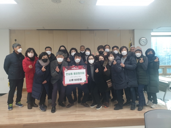 강문원 연성동 통장협의회장은 “작은 정성이지만, 관내 어려운 이웃들을 위해 소중하게 써 달라”며 “앞으로도 지역을 위한 따뜻한 나눔 활동을 자주 실천할 수 있도록 노력하겠다”고 밝혔다.