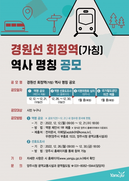양주시, 경원선 회정역 역사 명칭 공모 선호도 조사 실시