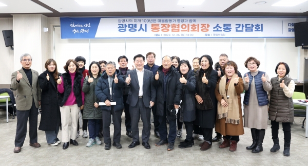 [금요저널] 광명시는 지난 26일 오후 평생학습원에서 마을의 핵심 활동가로 자리 잡아 가고 있는 각 동 통장협의회장과 간담회를 가졌다.