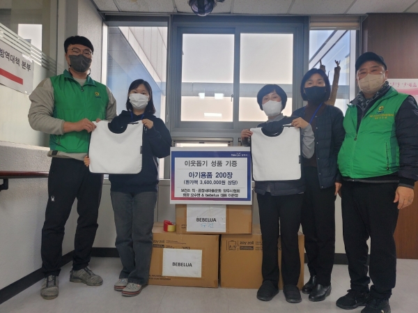 [금요저널] 직장·공장새마을운동양주시협의회와 유아용품 취급 전문업체 BEBELUA는 지난 27일 연말을 맞아 양주시보건소와 회천4동행정복지센터를 찾아아기용품 총 400장을 흔쾌히 후원했다.