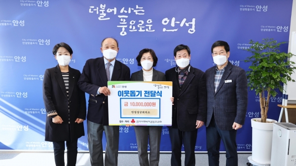 [금요저널] 안성시는 지난 27일 안성상공회의소에서 나눔문화 확산과 기부참여 활성화를 위해 안성시를 방문, 경제적 어려움을 겪고 있는 취약계층에게 도움을 드리고자 성금 1000만원을 전달했다고 밝혔다.