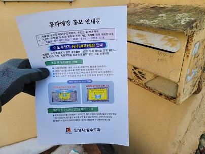 [금요저널] 안성시 상수도과는 최근 기록적인 한파로 인한 계량기 동파 등 시민들의 피해를 최소화하기 위해 겨울철 한파에 대비하는 방법을 적극적으로 홍보하고 있다.