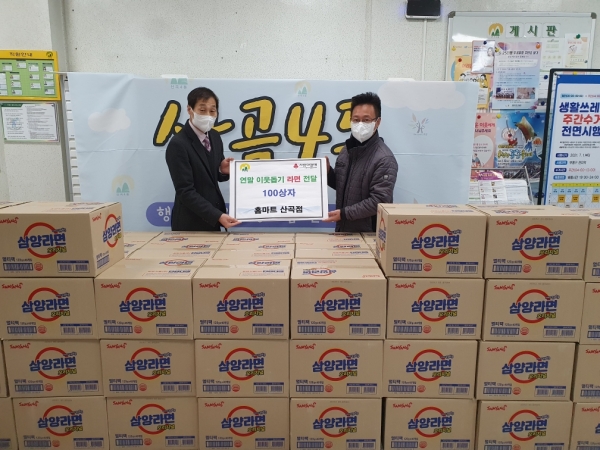 홈마트 산곡점은 매년 지역 내 소외된 이웃을 돕기 위해 라면 후원 등 나눔 활동을 하고 있다.
