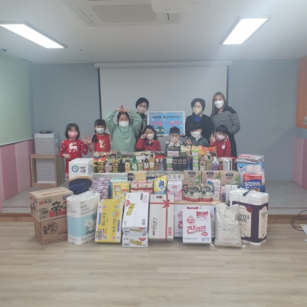 동산어린이집은 원아들에게 나눔 실천에 대해 교육하고 도움의 손길이 필요한 이웃을 돕기 위해 어린이집 원아들이 각 가정에서 가져온 생필품과 식료품을 하나하나 정성껏 모아 전달했다.