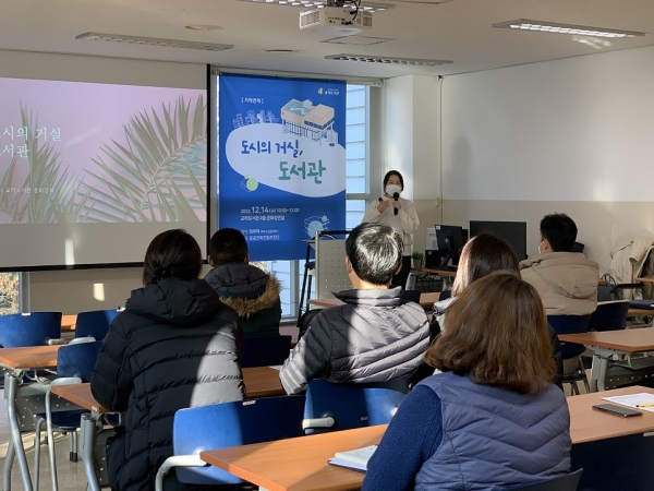이에 지난 14일 교하도서관 2층 문화강연실에서 파주 공공건축가 정희재 강사가 ‘도시의 거실, 도서관’을 주제로 건축 인문학 강좌를 개최했다.