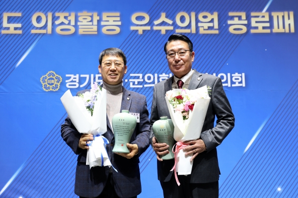 [금요저널] 경기 시흥시의회 박춘호 자치행정위원장과 이봉관 의원이 12월 29일 경기도시·군의장협의회로부터 우수의원 공로패를 받았다.