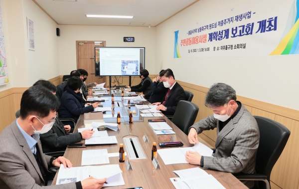 [금요저널] 인천 미추홀구는 3일 구청 소회의실에서 주안3동 용일사거리 남동측구역 주민공동이용시설 계획설계 보고회를 개최했다.