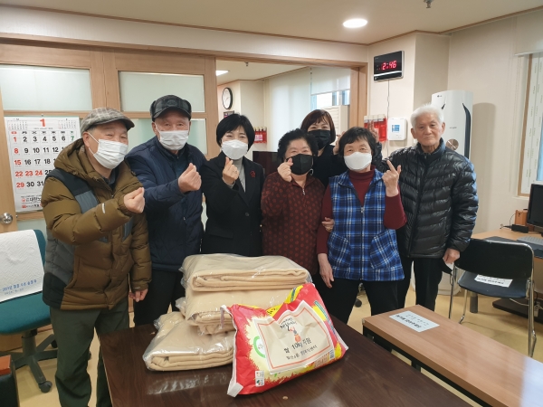 이날 쌀과 한파 대비 담요를 전달하며 겨울철 어르신의 안전과 건강을 살피고 새해 인사를 드렸다.