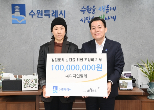 [금요저널] 공간디자인기업인 ㈜디자인알레가 “정원문화를 확산하는 데 사용해 달라”며 수원시에 1억원을 기부했다.