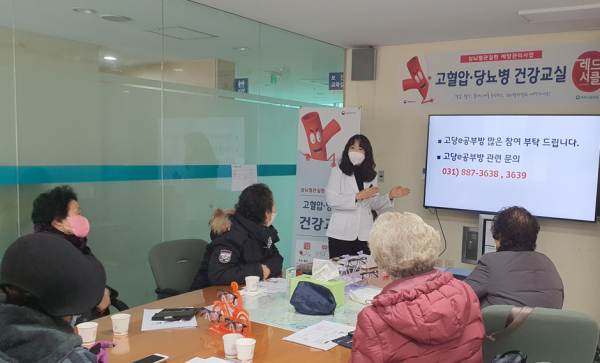 ‘고혈압·당뇨병 표준화 건강교실’은 심뇌혈관질환의 관리를 위해 소규모 집단 교육을 실시해 질병예방 및 지속관리의 중요성을 인지시키는 목적으로 고혈압·당뇨병·이상지질혈증 진단자 또는 유소견자를 대상으로 운영하는 프로그램이다.