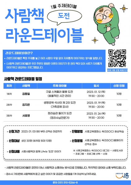 새해 첫 주제를 ‘도전’으로 기획해 ‘1월 사람책 라운드테이블’을 오는 12일부터 26일까지 시흥시중앙도서관에서 진행한다.