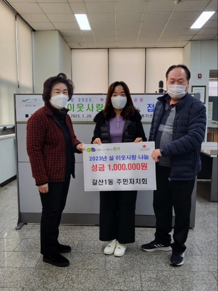 남점숙 갈산1동장은 “설을 맞아 이웃사랑 나눔을 실천해 준 주민자치회 위원들께 감사하다”며 “기부해준 성금은 불우한 이웃을 위해 소중하게 사용하겠다”고 말했다.