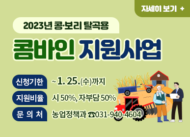 김은희 농업정책과장은 “콩·보리 수확철에 일손 부족으로 힘든 농업인들의 부담을 덜어주고자 실시하는 만큼 농업인들의 많은 참여를 바란다”고 말했다.
