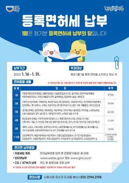 [금요저널] 시흥시가 2023년 등록면허세 5만3,846건, 22억6천7백만원을 부과 고지했다.