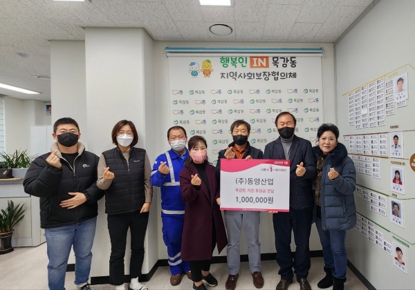 ㈜동영산업은 여러 후원 활동과 더불어 어려운 이웃을 위한 나눔을 꾸준히 실천해오고 있으며 이번 후원금도 직원들이 자체적으로 성금을 모아 마련했다.