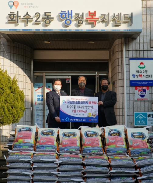 [금요저널] 인천 동구 화수2동 지역사회보장협의체와 송화새마을금고는 지난 11일 사랑의 좀도리 운동 쌀 전달식을 가졌다.