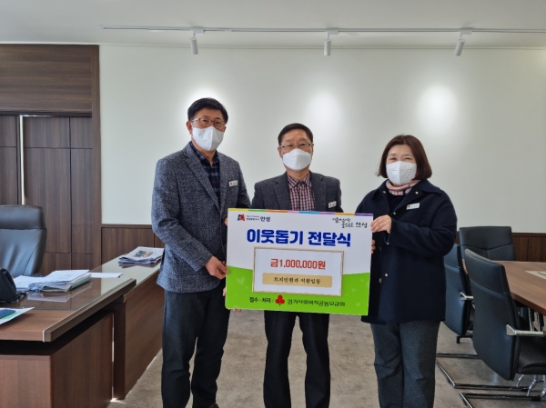 [금요저널] 안성시 토지민원과 직원들은 지난 11일 2022년도 업무평가로 받은 시상금 100만원을 관내 어려운 이웃을 위해 기부했다.