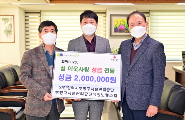 [금요저널] 부평구는 지난 11일 부평구 시설관리공단과 공단직장노조로부터 설 이웃사랑 성금 200만원을 전달받았다.