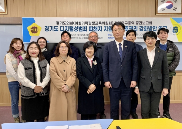 [금요저널] 경기도의회 여성가족평생교육연구회는 12일 가톨릭관동대학교 창조관에서 ‘경기도 디지털성범죄 피해자 지원 및 사후관리 강화방안 연구’에 대한 정책연구용역 중간보고회를 개최했다.