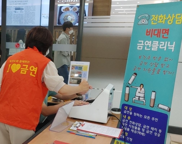 이동금연클리닉은 사업장, 군부대를 대상으로 1:1 맞춤형 금연 상담을 제공하고 등록자에게는 금연보조제, 행동요법 물품을 지원하며 1,3,6개월 금연 성공자에게는 기념품도 증정된다.