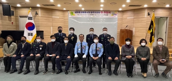 우은정 자치협력과장은 “지난 6년간 교통봉사대를 이끌어오신 조두현 대장님을 비롯한 대원 여러분들의 노고에 깊은 감사를 드린다”며 “새로 취임하신 곽성운 대장님을 필두로 새롭게 거듭나는 새마을교통봉사대의 발전을 기원하며 앞으로도 교통이 안전한 파주를 위해 활발히 봉사해 주실 것을 부탁드린다”고 말했다.