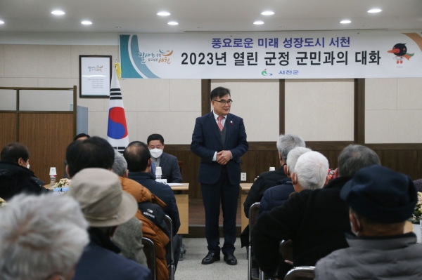 군민과의 대화에 앞서 정해순 기획감사실장은 지난해 주요성과와 올해 군정운영 방향을 설명하고 미래 신성장 동력사업, 장항국가산단 신규 기업유치단 편성, 농촌중심지 활성화 사업 등 주요 역점사업 등을 추진하겠다고 밝혔다.