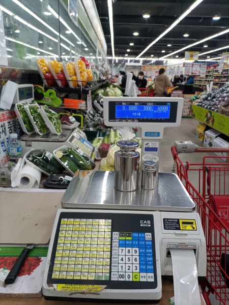 이번 점검은 저울 위·변조 여부 정기검사 여부 사용오차 초과 여부 영점조정 상태 검정필증 부착 여부 법정 단위 사용 여부 등을 확인한다.