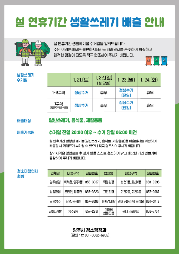 양주시, 설 연휴 생활쓰레기 관리대책 가동